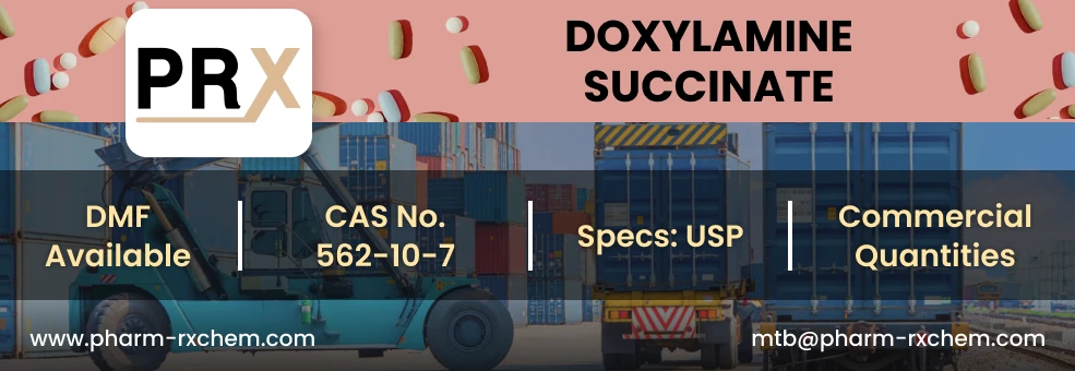 PharmaCompass also assists you with knowing the Doxylamine Succinate API Price utilized in the formulation of products. Doxylamine Succinate API Price is not always fixed or binding as the Doxylamine Succinate Price is obtained through a variety of data sources. The Doxylamine Succinate Price can also vary due to multiple factors, including market conditions, regulatory modifications, or negotiated pricing deals.
