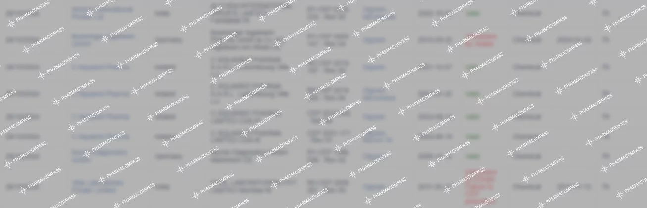 | Last Updated on PharmaCompass | Virtual Booth | Country | Certificate Holder | Certificate No. | Substance | Issue Date | Status | Type | End Date | Substance No. |